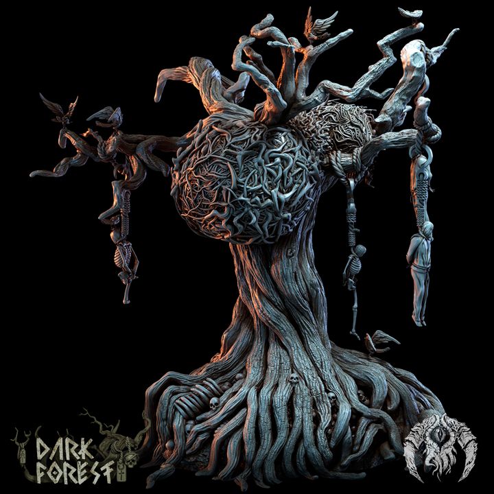 The Dark Forest is a place of twisted and gnarled trees, their branches heavy with the weight of hanging corpses and the tangled remains of strange, monstrous nests. Scattered throughout the forest lie shattered Menhir, relics of a forgotten time, their crumbling forms a testament to the land's ancient corruption. Every step taken is an invitation for the unseen eyes to watch, for even the trees themselves seem to murmur, betraying the movements of every intruder. The air is thick with the eerie sense that no soul is ever truly alone in these dark woods. Tread carefully, for the forest’s secrets are not easily forgotten.