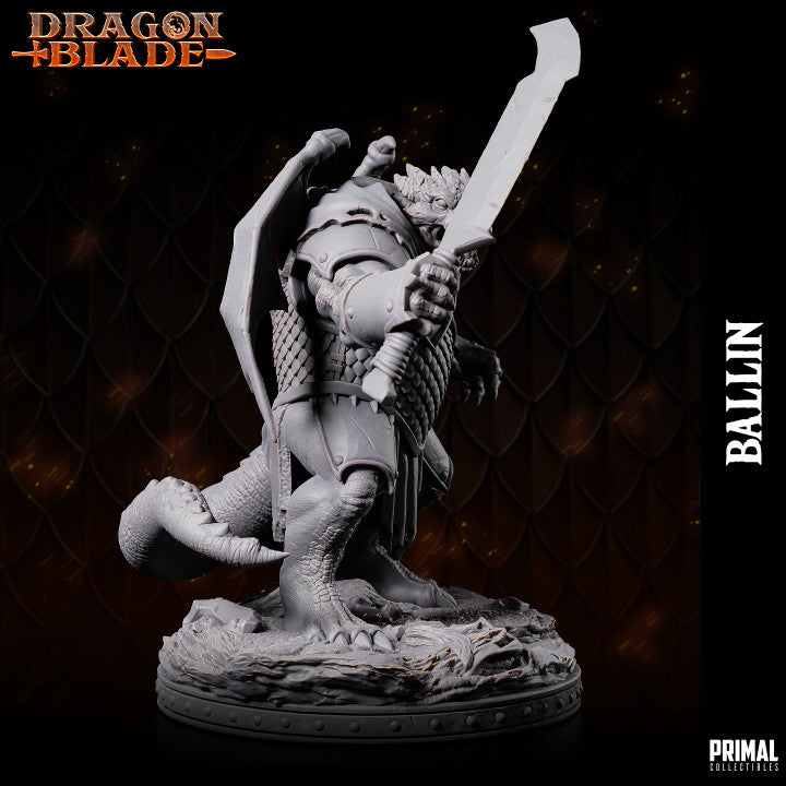 Ballin draconian dragonswith a sword pre supported for 2 different scales: 32mm and 75mm by PRIMAL collectibles.