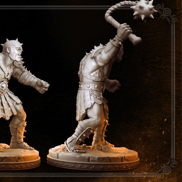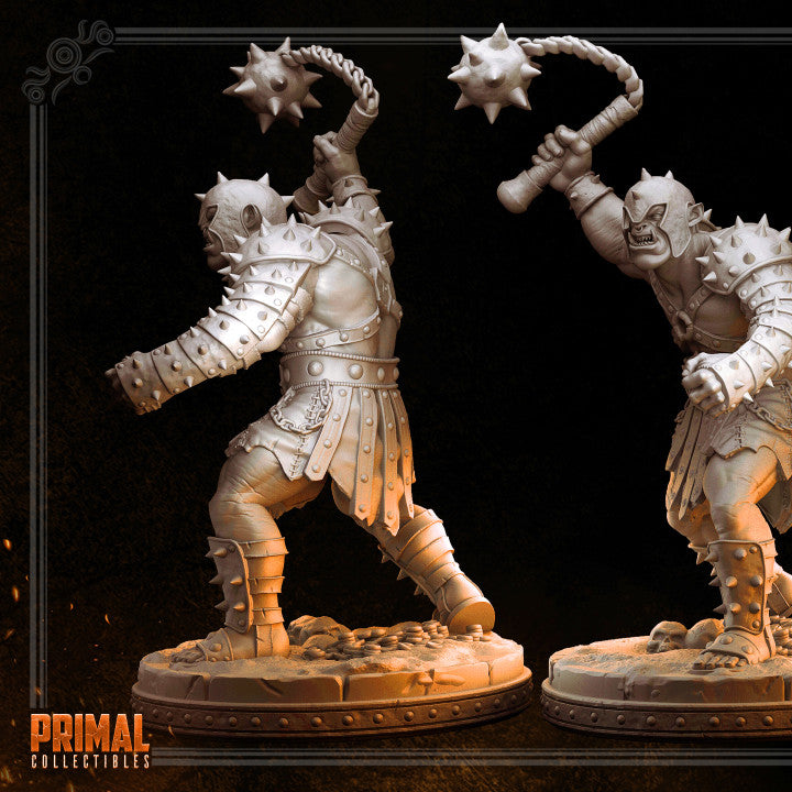 Orc minion Maknok pre supported for 2 different scales: 32mm and 75mm by PRIMAL collectibles.